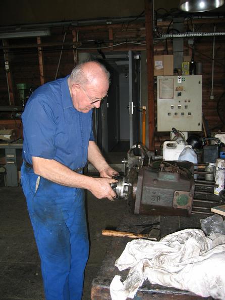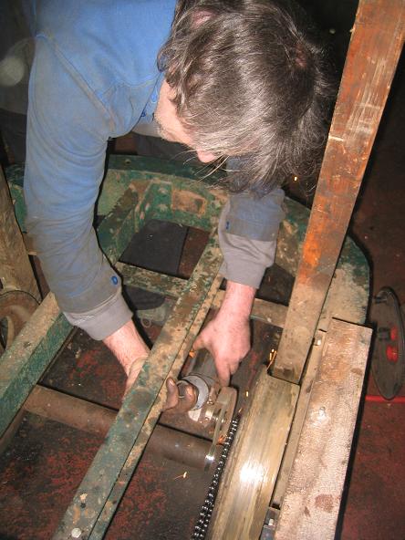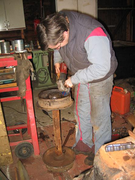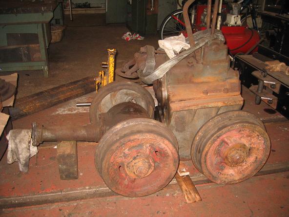 Jean-Luc a attaqué la remise en état des essieux de ses deux berlines de mine. Il a déjà séparé les essieux de l'une d'elles et, sitôt l'AG terminée, il travaille au démontage des roulements à billes.
