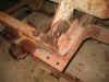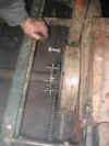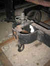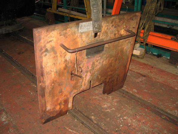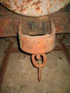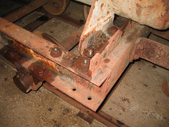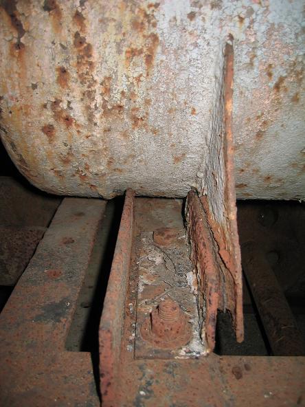 Vendredi 06 Février, je commence par observer l'état général du wagonnet. Certaines cornières, probablement de récupération, ont été découpées un peu grossièrement au chalumeau. La citerne semble dans un état tout à fait satisfaisant et ne présente qu'une corrosion partielle et superficielle. Seules les équerres de fixation présentent une boursouflure plus ou moins importante au niveau de la fixation à la poutrelle métallique, mais rien de catastrophique. Les ''tampons'' sont en excellent état. Les crochets d'attelage sont en bon état également et seront conservés, malgré le système en vigueur au CFC, par barre d'attelage. Pour réaliser cette adaptation, je relève les mesures nécessaires sur d'autres wagonnets.