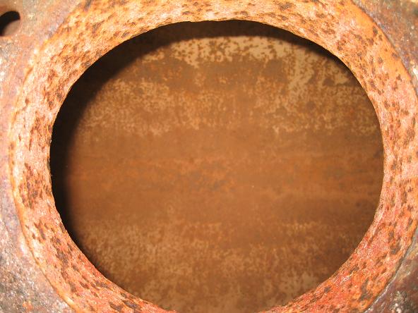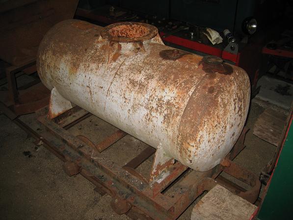 De retour au CFC le 17 et 18 Janvier 2009, je démonte tous les bouchons, la vanne, la petite bride et le couvercle du trou d'homme après traitement au dégrippant et bien des efforts. Un premier examen visuel de l'intérieur de la citerne révèle des surfaces propres, une corrosion superficielle et des traces de peinture identiques à celles visibles à l'extérieur. Voilà qui est plutôt bon signe, mais quel était son usage ? Probablement uniquement de l'air comprimé ; ce qui expliquerait son aspect intérieur très propre. J'emporte les petites pièces dans ma valise pour remise en état à Lyon.