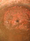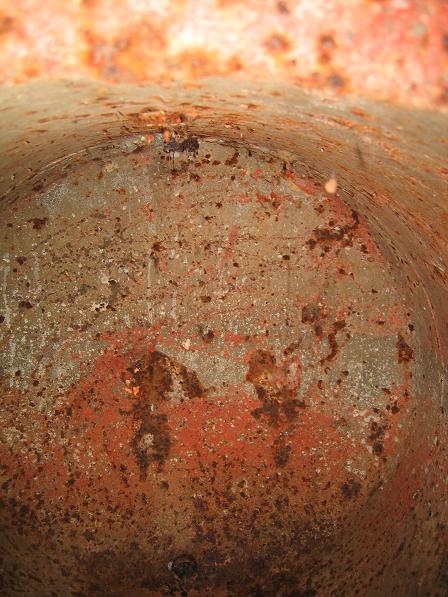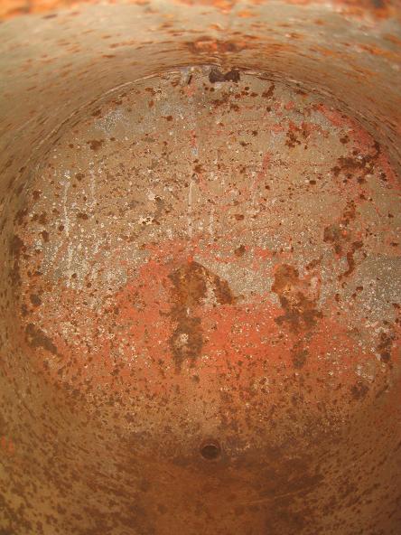 L'intérieur de la citerne présente encore des traces de peinture et une faible corrosion (18/01/09). |