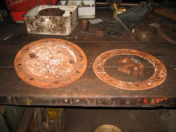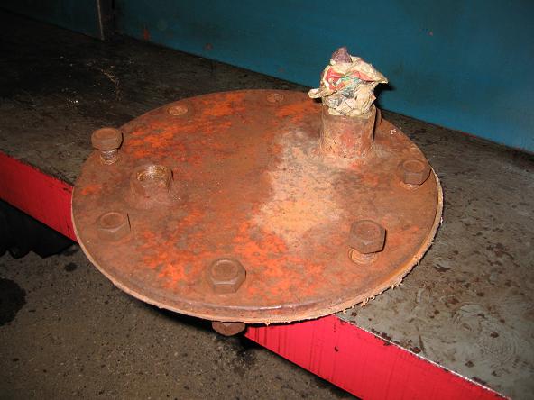 Le couvercle de trou d'homme est ouvert, les bouchon et la petite bride sont démontés (18/01/09). |