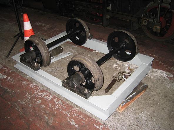 Je commence ensuite par redémonter le couvercle du trou d'homme, à traiter tous les boulons au dégrippant et à démonter ceux fixant la citerne au châssis ; seuls 2 sur 8 me résisteront (pour cette fois). Trouvant le roulement un peu dur, et pour en avoir le cœur net, je démonte une boîte d'essieux et transporte celle-ci et le couvercle de trou d'homme à l'atelier. Il faut préciser ici, que jusque là, afin de ne pas perdre trop de temps, je travaillais au fond du dépôt 2 (dans le froid !), évitant ainsi de trop longues manœuvres pour transférer ce wagonnet à l'atelier et le retransférer de nouveau dimanche soir. Un WE c'est court alors, venant de loin, autant le ''rentabiliser''.