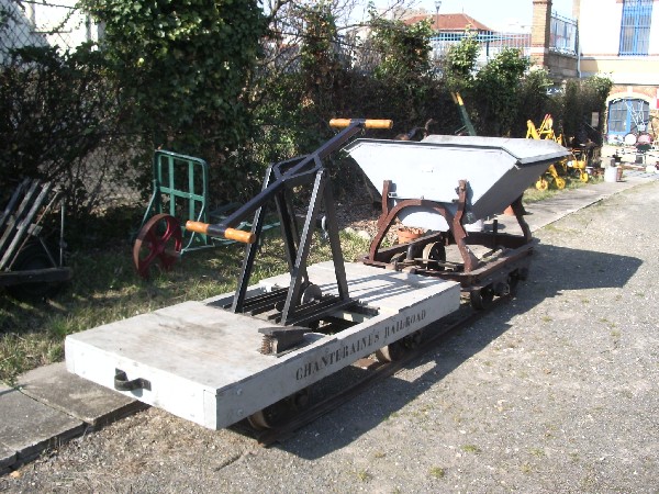 Sur le quai la draisine et un wagonnet type Lorraine |
