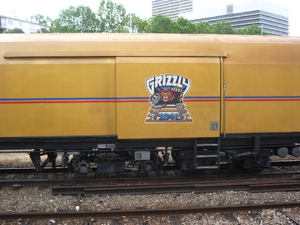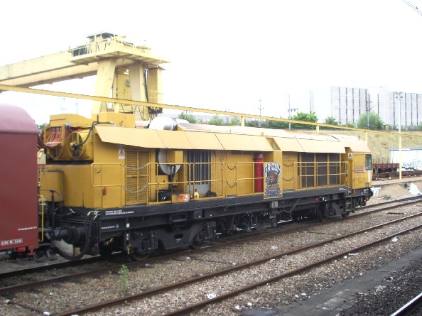 Ici c'est un train de meulage de rail Grizzly (1997)qui connut des précédentes versions avec le wagon de meulage WM (1953), le train de meulage des rails TMR (1971), les machines à meuler MR III (1980) et MR IV (1986), les trains de meulage MRK (1989).
