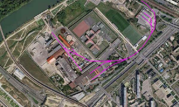 stationnés le long de la Seine. Deux voies reliées par un aiguillage ont
