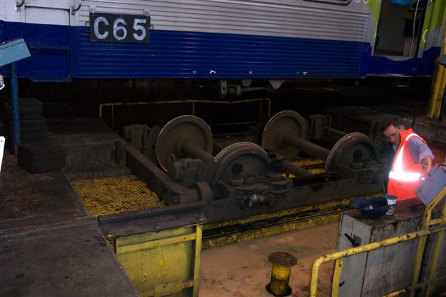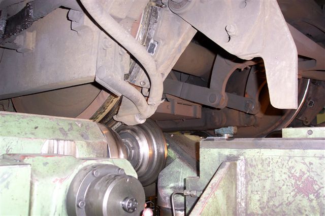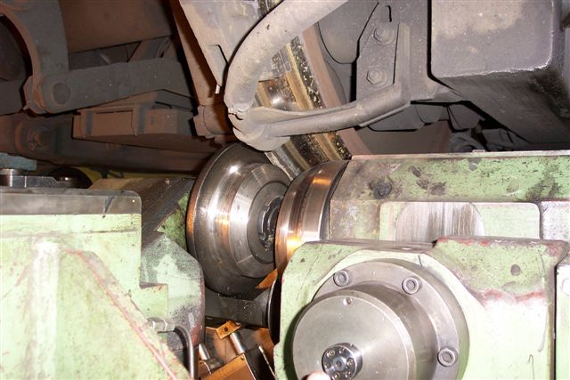 personnel, une 17000 sur le tour en fosse pour alésage des roues (on voit les galets