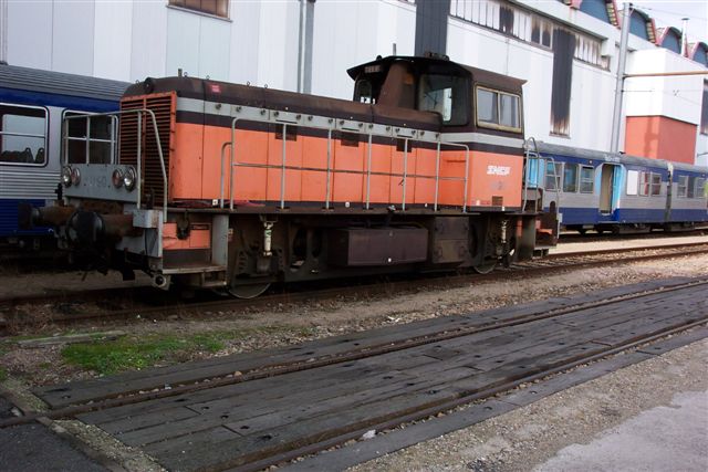 dépôt aujourd'hui disparu, un second Y 8000 en atelier avec attelage BSI, le chariot de retrait de