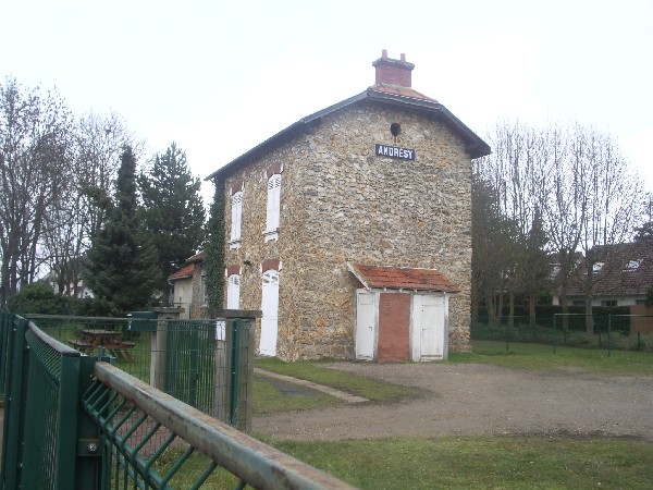 La gare des Chemins de fer de Grande Banlieue sur la ligne de Poissy à Cency (près Vauréal). |