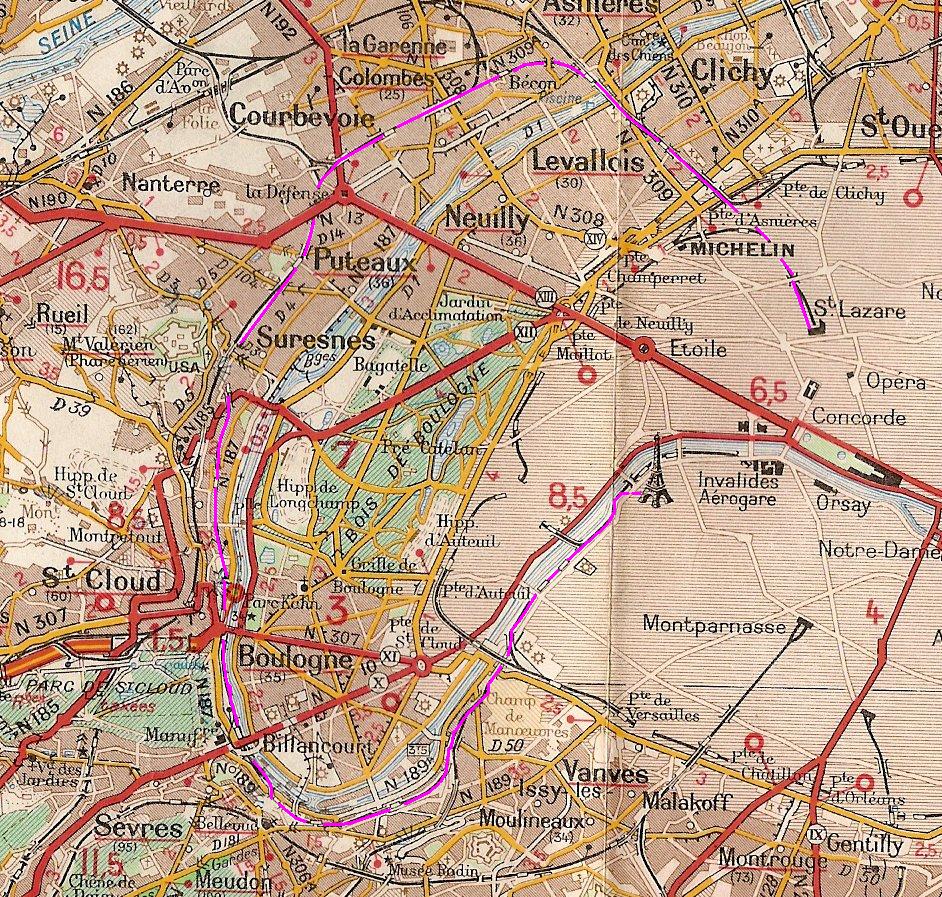 La ligne poursuivait en direction de St Cloud où elle rejoignait la Seine qu'elle longeait jusqu'au Pont de Sèvres.