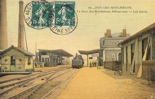 La ligne traverse une zone fortement industrialisée et arrive à la gare des Moulineaux-Billancourt .
