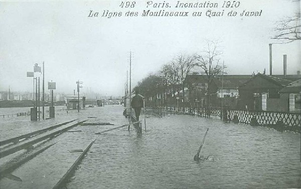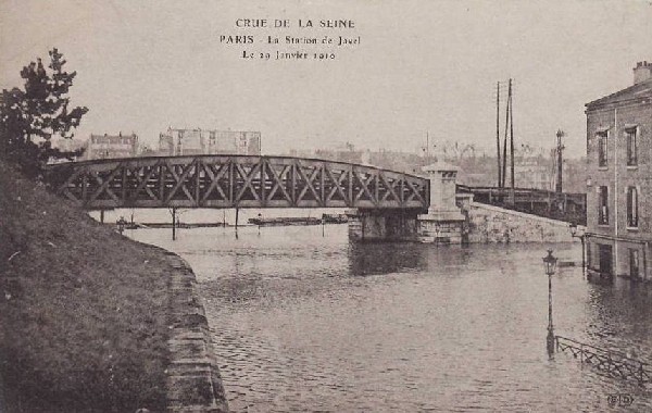 Le pont qui précède la gare de Javel lors de la crue de 1910 |