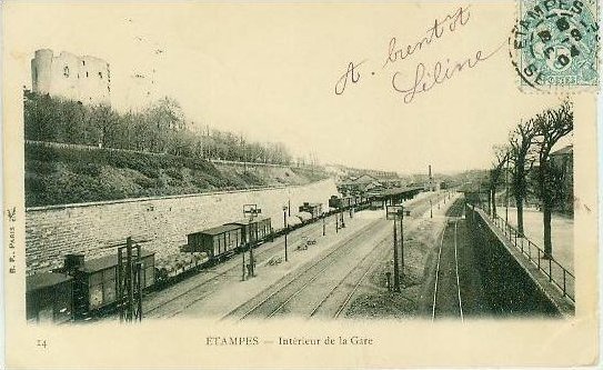 Le quai est toujours présent. À droite la voie vers Auneau (aujourd'hui un embranchement particulier desservant un ferrailleur), tout droit la ligne vers Orléans via Patay. |