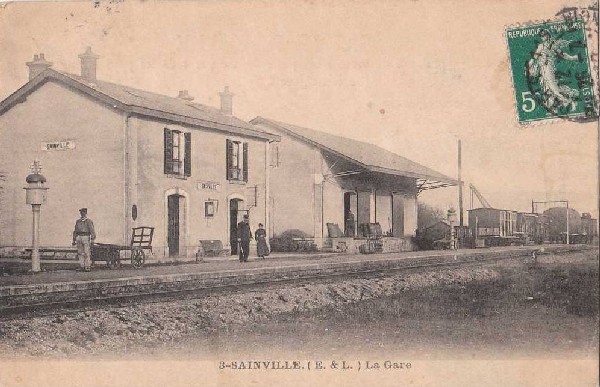 alignement la voie atteint le village de Sainville au sud duquel, la gare est