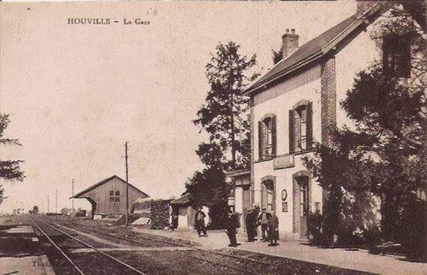 La ligne arrive à la petite gare toute en hauteur (style État) de Béville-le-Comte. |