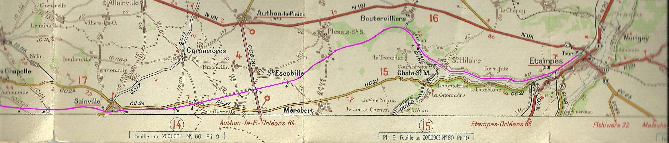 ligne continue en direction de Chartres et croise à niveau le CG7 que suit le