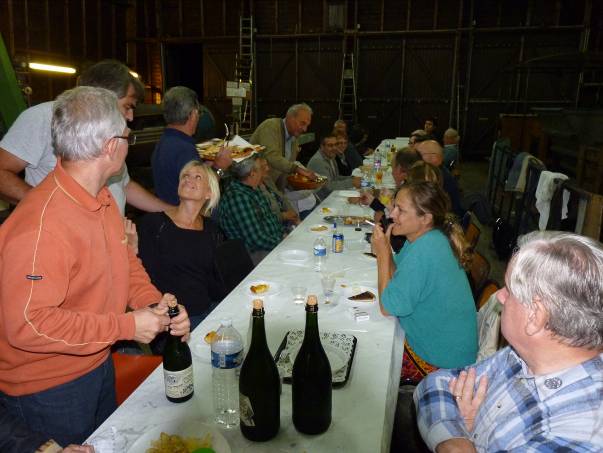 La journée tirant à sa fin, les rames furent reçues l’une après l’autre et remisées pour le lendemain. Aucun train de nuit n’étant prévu, les protagonistes se retrouvèrent rapidement autour du châssis DECAUVILLE de Gilbert, transformé en bar pour l’occasion.