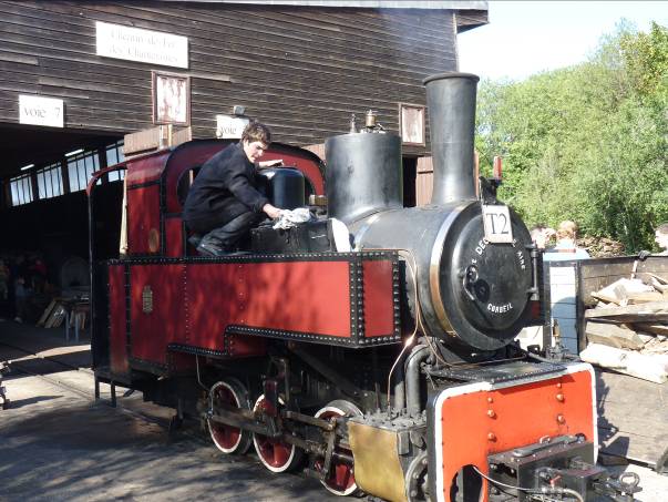 Je retrouvais sur place Hundy et Jean Michel Laurent, à un horaire que j’aurai la décence de taire... Toujours est-il que l’heure fatidique arrivait, les aiguilles de la pendule ayant tendance à bouger plus que celle du manomètre. 8h50, 3 bars……..et Guy Bobitch qui arrive, mon sauveur !!! Décision est prise de former la rame, TABAMAR en tête, deux baladeuses et un tracteur socofer en queue. Le but de la manœuvre étant de s’accorder le temps de la descente afin de parfaire notre pression, ce qui fut fait, le manomètre arborant fièrement 7 bars à la mise à quai. Le temps de la mise en tête et un coup de fil nous précisait que le groupe attendait au dépôt……………..Le reste n’est que routine, entre la rosée couvrant le rail dans toutes les rampes, la volonté des photographes de filmer des « démarrages » etc. au bout du compte un sympathique moment dont chacun se souviendra.