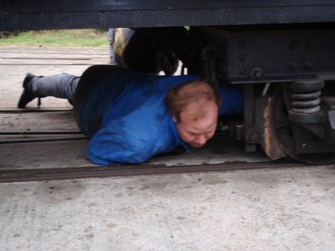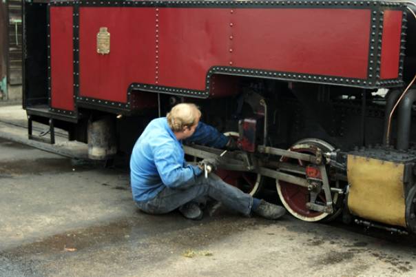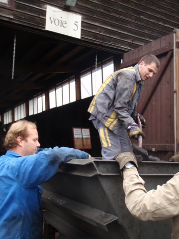 Le train est prêt à quitter le dépôt, les équipes se concertent.