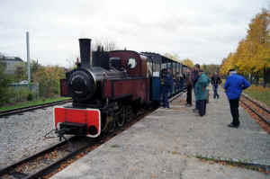 Le dimanche 30 octobre dernier était le dernier jour de circulation "officiel" de la saison 2011*. Pour cette occasion, nous avions décidé que l'unique train serait à vapeur. La 030T Decauville fut allumée dès le matin et prit en charge sa rame de 2 baladeuses Socofer en début d'après-midi.