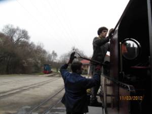 Le train diesel sera effectué par Guy B. avec le Socofer 0B0-1. Pendant la préparation de la 030, Guy B. s’emploie à la manœuvre des rames et le déplacement du wagon à bois qui sera bien utile pour l’allumage.