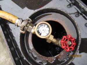 Une pige graduée tous les 100 litres a été fabriquée et permettra ainsi d’incorporer les 10 g. de produit de traitement par 100 litres d’eau ajouté à chaque remplissage. C’est simple et efficace. Ce produit de traitement est un inhibiteur d’oxygène couplé à un effet antitartre. Il est composé essentiellement de phosphates alcalins, dispersant et sulfites. Il permet de maintenir la teneur en PO4 souhaitable dans la chaudière et de disperser les dépôts et les sels précipitants sous forme de boues facilement extractibles. (Il faudra refaire des extractions)