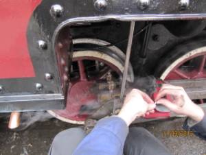 Graissage, nettoyage, contrôle des jeux, remplissage de la soute à charbon et des soutes à eau sont menées de mains de maître par Hundy H. et Thibaut Z.