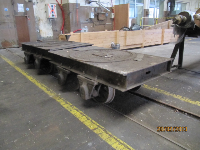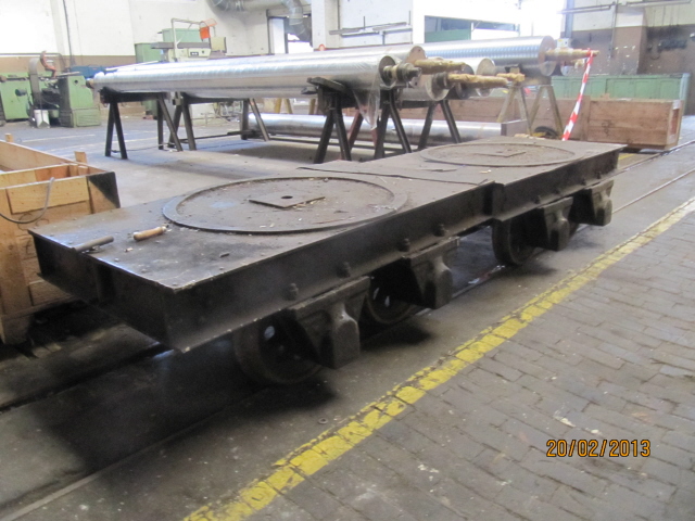 Voici notre future acquisition, deux wagonnets équipés de supports articulés sur galets permettant de transporter des charges lourdes et longues. (L’usine s’en servait pour transporter les rouleaux des laminoirs à papier) Un beau petit chantier de restauration pour notre atelier.