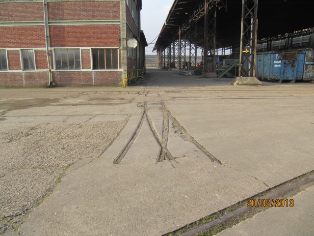 Voici quelques vues de l’intérieur de l’usine qui possédait un véritable réseau en voie de 60 et que les quelques restes encore visibles nous laissent rêveur. Des aiguilles, des plaques tournantes, des croisements en quantité qui formaient un dispositif très complexe de transport du bois pour la confection de la pâte à papier. Les voies nous ont également été proposées, mais toutes sont posées dans du béton, donc pratiquement impossible à récupérer avec les moyens dont nous disposons.