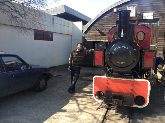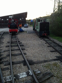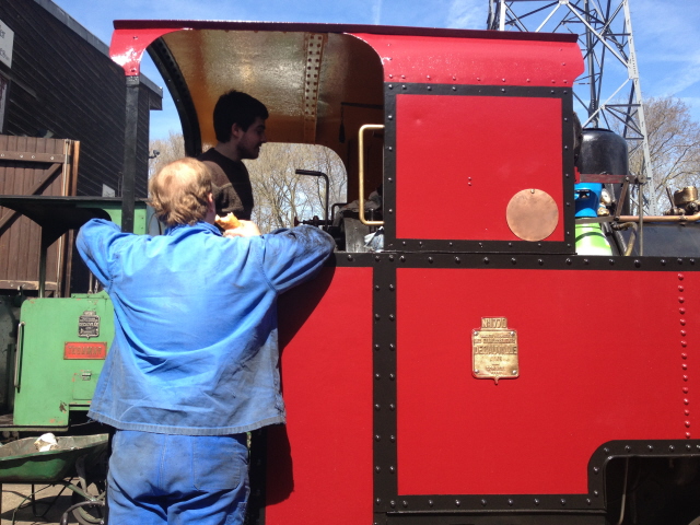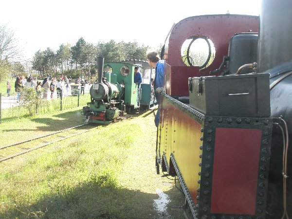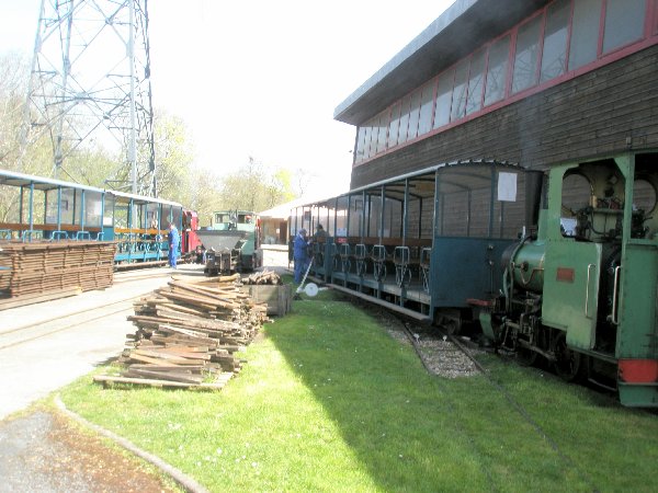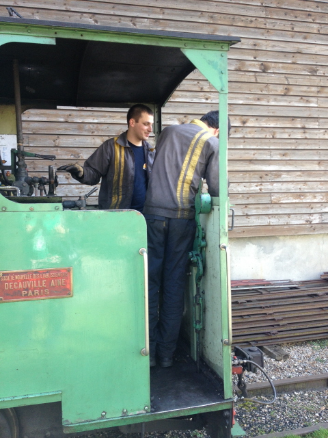 Ici croisement de deux vapeurs. Une situation que l’on va essayer de développer plus souvent au CFC. Bientôt une nouvelle vapeur, la 030 O&K va faire son apparition. Elle termine sa préparation dans les mains de Marc-André, Jean-Marie et François. Si tout se déroule comme prévue, le premier roulement sera effectué aux JPO de Mai.