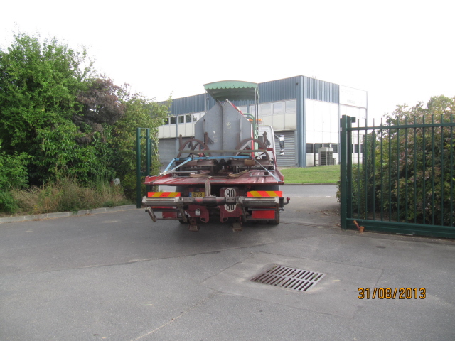 On complète par une benne basculante et on sangle le tout et direction LE BOULLEAUME pour le 1er voyage.