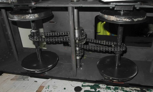 moteur entraîne une chaîne qui anime l’arbre situé en partie médiane, la