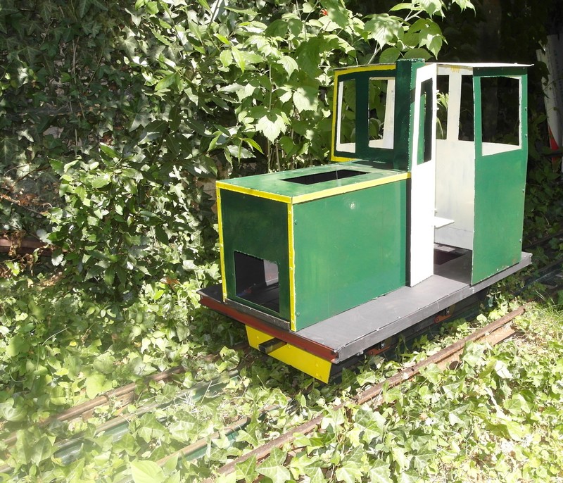 Parallèlement, la « caisse » est mise en peinture, ainsi le futur locotracteur peut effectuer quelques tours de roues sur la voie d’essai du jardin ! (voie lourde en rail de 4,5 kg)