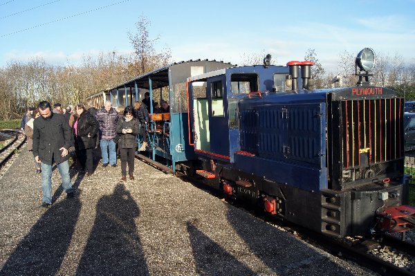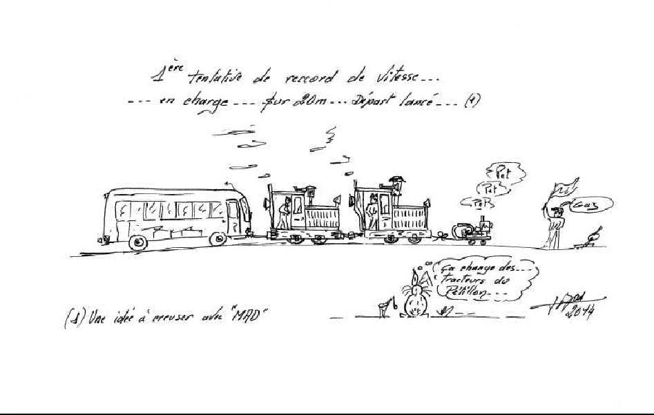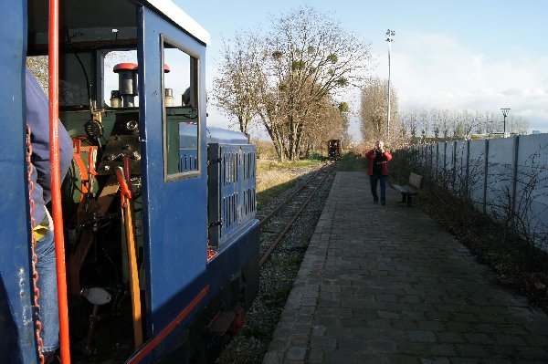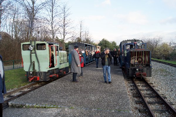 Vers 14h30, ce furent deux trains composés chacun d'une baladeuse Socofer et d'une voiture fermée qui quittèrent le dépôt. Les Plymouth vert et bleu remorquaient nos convois direction le Pont d'Épinay. Cette gare tête de ligne ne possédant qu'une seule voie à quai, les deux trains s'arrêtèrent l'un derrière l'autre, seul le locotracteur du premier fit le tour par la voie d'évitement pour s'atteler en tête du 2ème train arrivé en gare tandis que celui qui se trouvait en tête de celui-ci prit en charge l'autre train pour le retour.