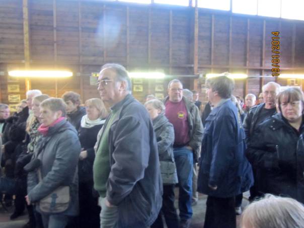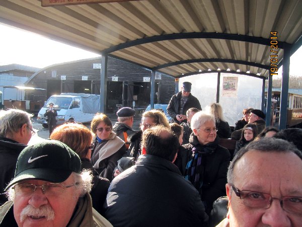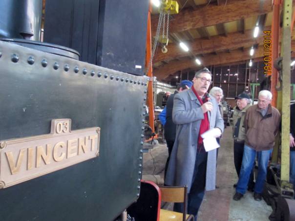 De retour au dépôt, notre Président, Didier Meurillon, nous fît un petit discours au cours duquel il remercia les nombreux amis venus nous rendre visite en cette occasion. Il rappela les principaux évènements qui marquèrent l'année 2013 et présenta les grandes lignes de la saison 2014 ou le point fort se situera les 17 et 18 mai prochains pour les 30 ans de notre association. Puis il invita l'assemblée à s'approcher du buffet ou une part de galette accompagnée d'un excellent cidre fut servie.