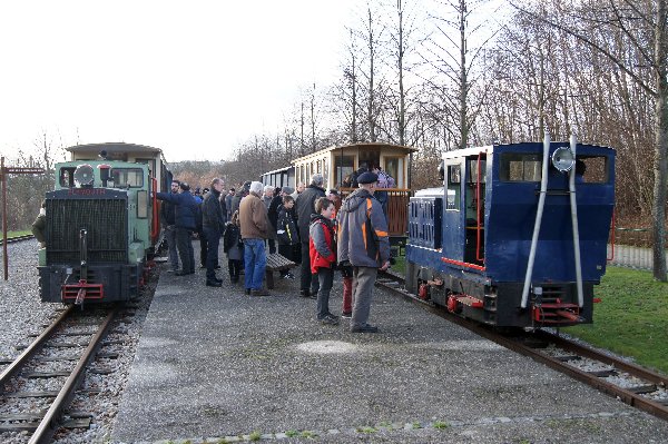 Après quelques photos ayant permis à chacun de se dégourdir les jambes, les deux convois quittèrent le Pont d'Épinay et continuèrent "non stop" jusqu'à la station "Petit-Lac ou ils marquèrent un arrêt photos. Le soleil bas de janvier éclairait d'une belle façon nos trains, arrêtés l'un derrière l'autre.