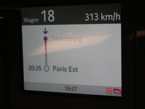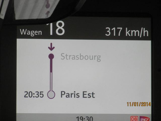 C’est donc de très bonne heure que nous nous sommes retrouvés Daniel et moi à la gare de l’Est à PARIS pour un départ en TVG dès 7h00 du matin. Petit « dèj » sur place et nous allons directement à STRASBOURG en 2h30 à la vitesse de 320 km/h puis nous franchissons le Rhin et c’est à 250 km/h que l’on rejoint KARLSRUHE en 30 mn environ. Le rêve quoi !