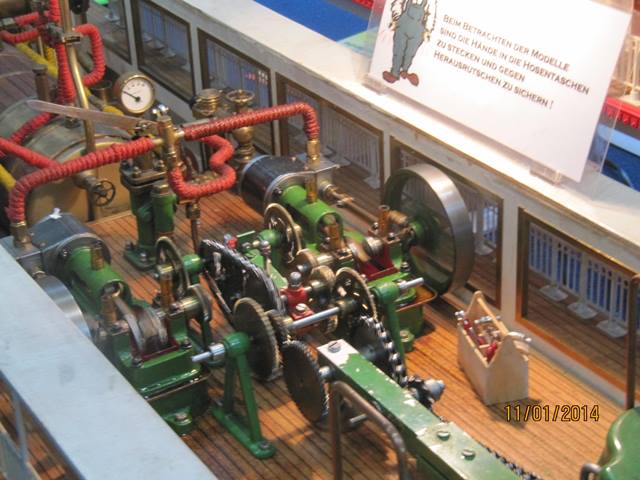 Puis les bateaux à vapeur étaient également présents, en modèle réduit et en modèle réel, dont une magnifique chaloupe à vapeur équipée d’un moteur double expansion. Un moteur de ce type était d’ailleurs présenté en fonctionnement à l’air comprimé. Son ronronnement merveilleux en fonctionnement pourrait provoquer un orgasme chez les vaporistes les plus affutés !