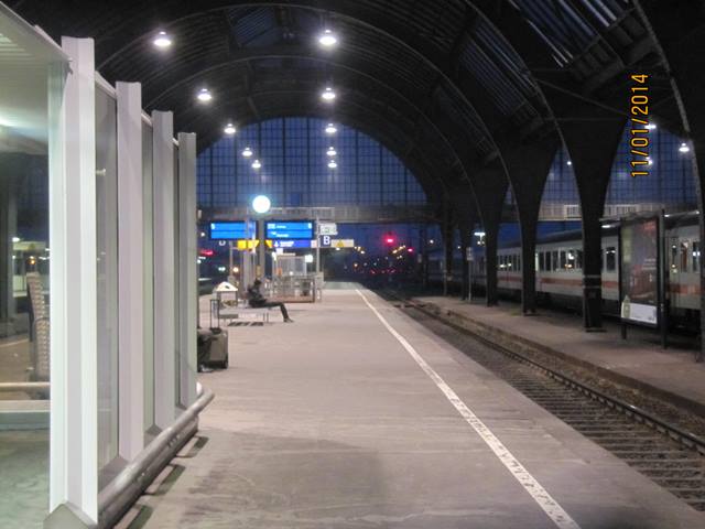 sur Paris. Il fait nuit, on attend le TGV en gare de KARLSRUHE en admirant les