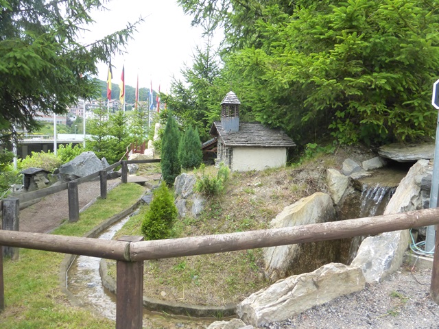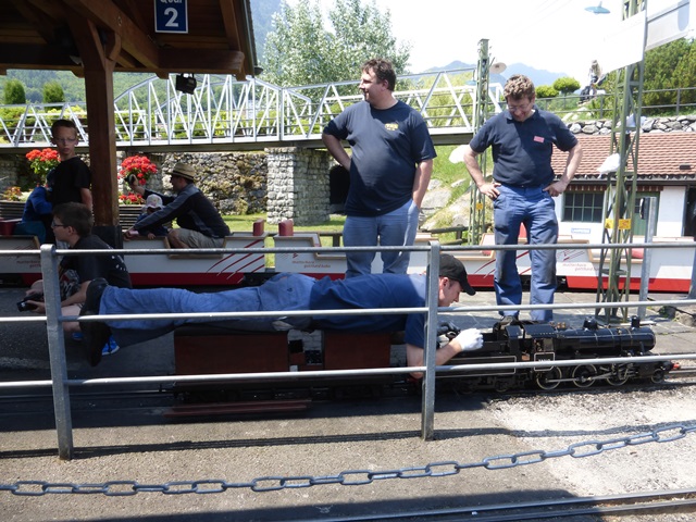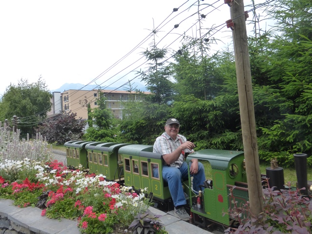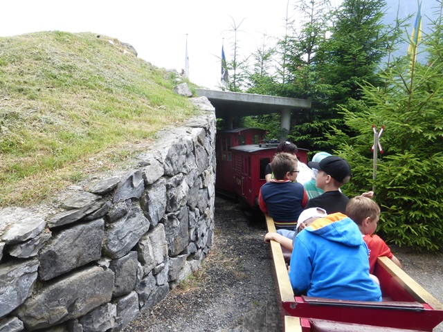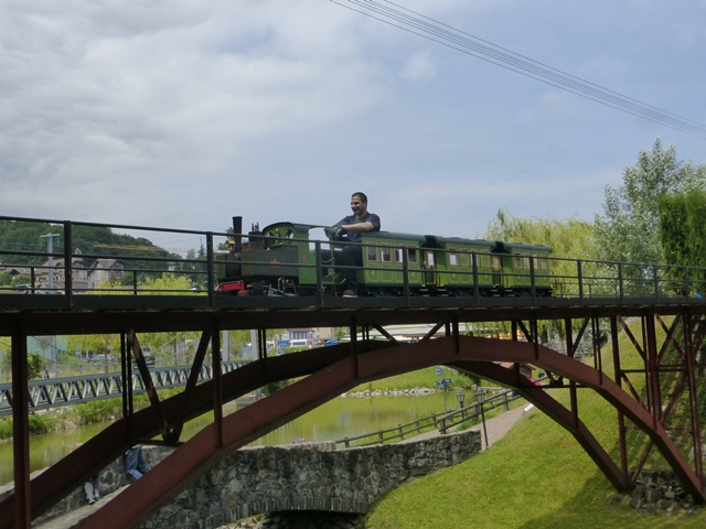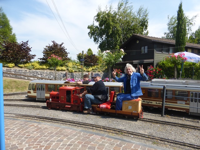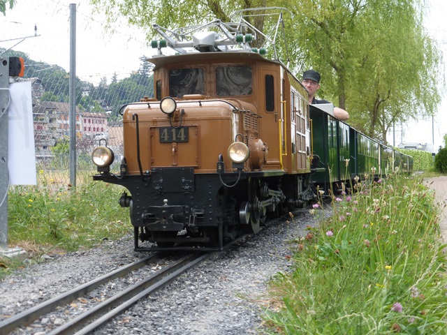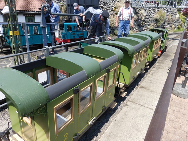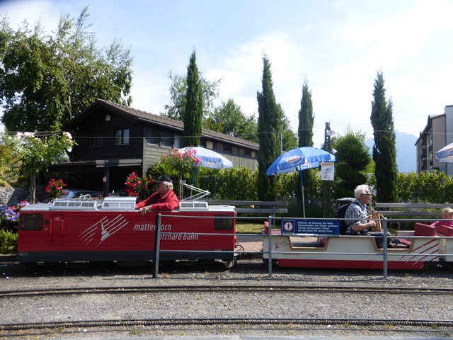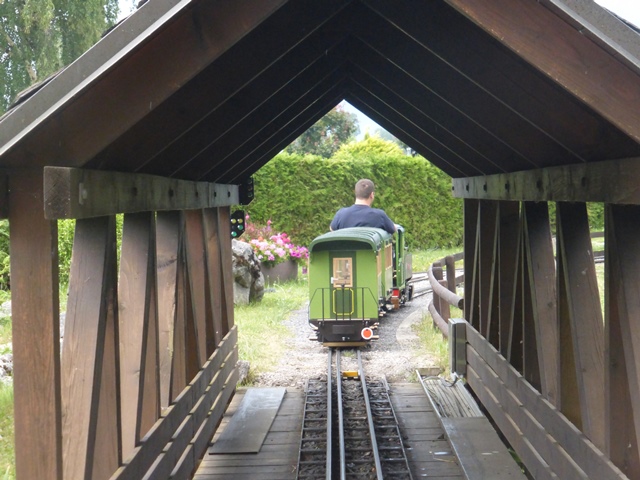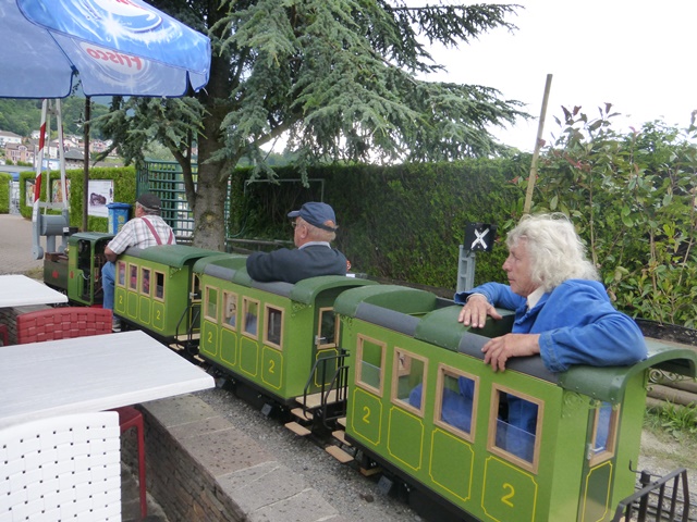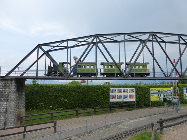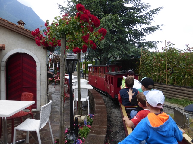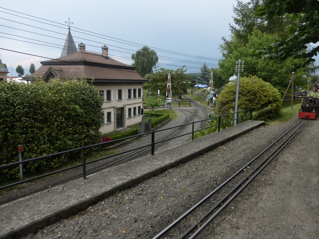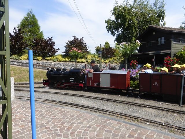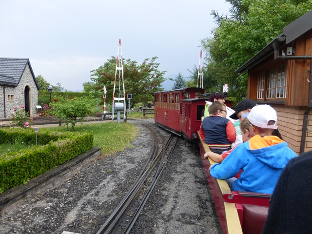 Le train à crémaillère est très prisé. Le voici au passage de la traversée qui ramène la rame à travers le petit village miniature.