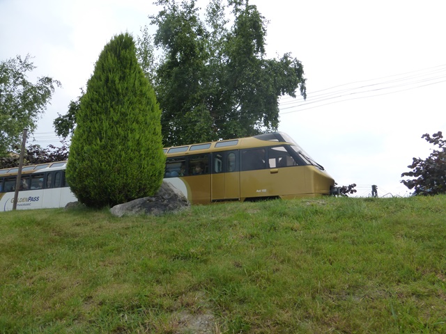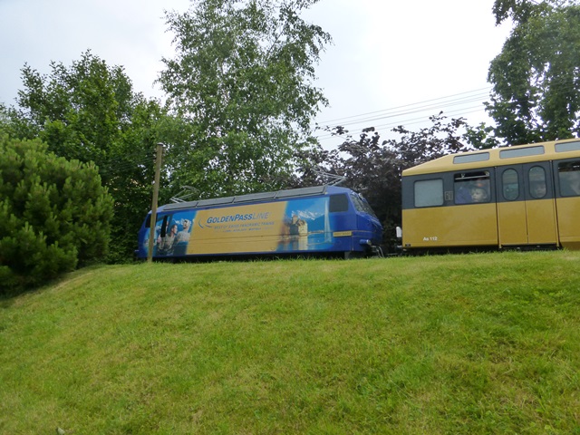 Croisement de la reproduction du train GOLDENPASS qui fonctionne en pousse comme en réalité. Les toitures sont ouvrantes pour permettre aux passagers d’accéder à bord, et la conduite est assurée dans la voiture pilote comme en réalité. La motorisation de la machine est assurée par un groupe électrogène compact et isolé phoniquement, celui-ci alimentant les moteurs électriques sur chaque essieu.