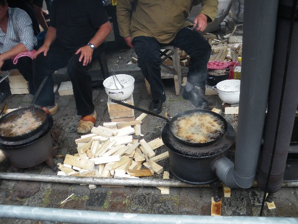 côté, la friture de la récente pêche, à l'ancienne dans des chaudrons