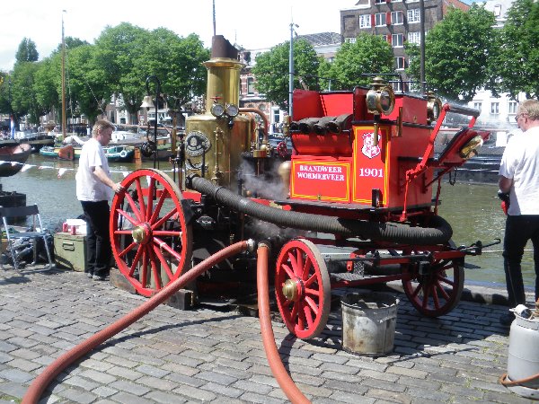 à incendie à vapeur qui puise l'eau dans le port et la rejette pour le