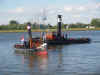 voilà le ballet des remorqueurs. Pas moins de onze remorqueurs à vapeur