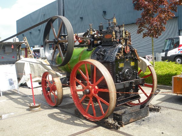 peu plus loin, cette locomobile qui entraîne un banc de sabots. |