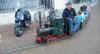 tourne inlassablement sur une courte voie posée sur la chaussée. |
