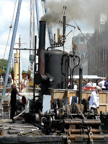 chaudière Field (j'ai vu les tubes d'eau) qui actionne une grue, des