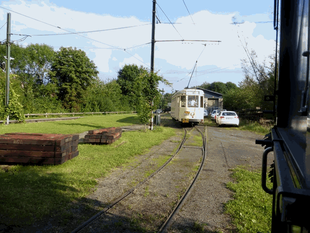 Retour au Musée, changement de câble pour la perche, passage à niveau, traversée de jonction, il y a du monde sur les rails, mais on va se trouver une petite place grâce à une manœuvre bien maitrisée.