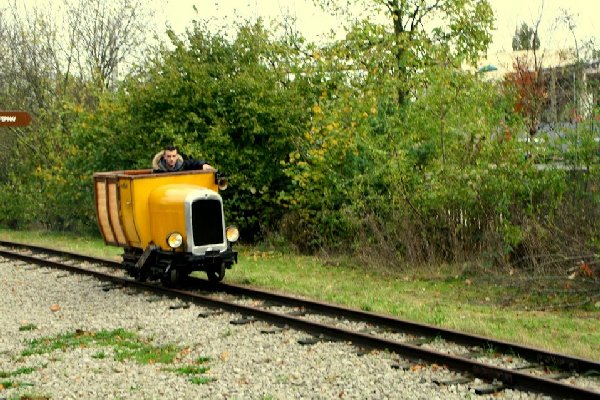 14h30, c'est le départ. Le train, composé d'une baladeuse Socofer, de la