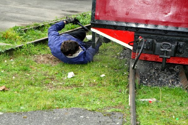 graissant, chargeant le charbon, remplissant les soutes à eau, etc.