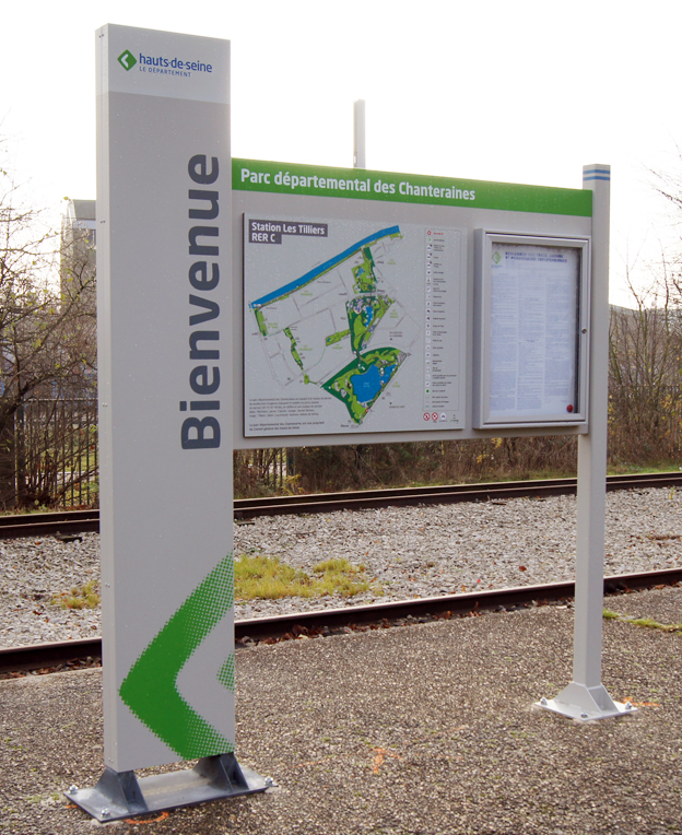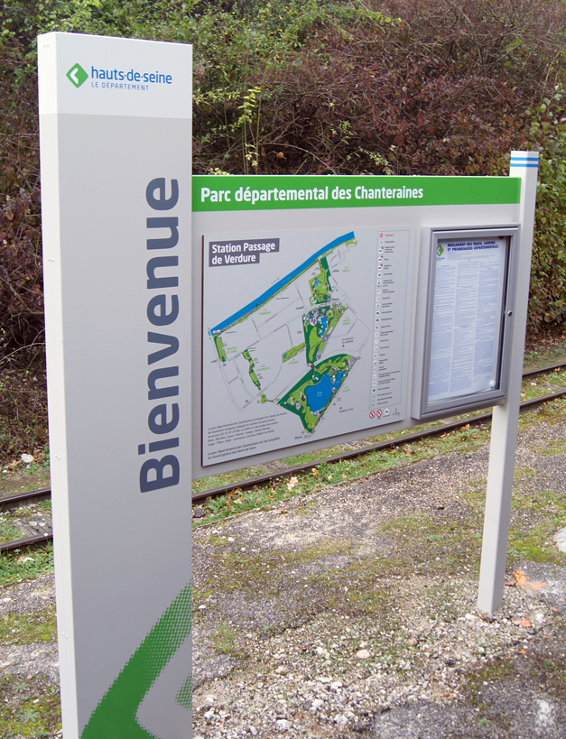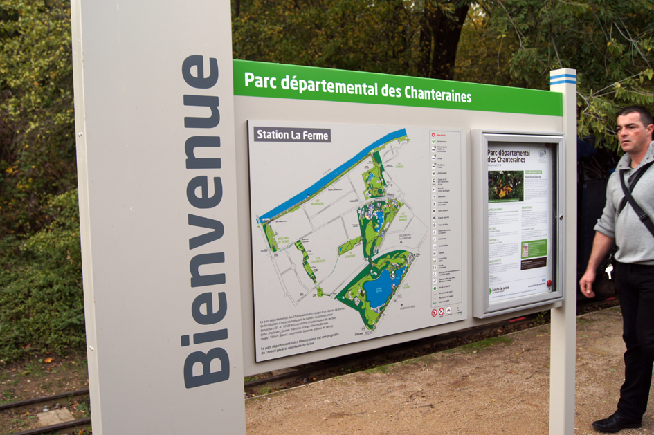 En cette fin d'année 2014, une nouvelle signalétique a été installée par le Département dans le Parc des Chanteraines. Cette opération concerne également les gares du CFC.
